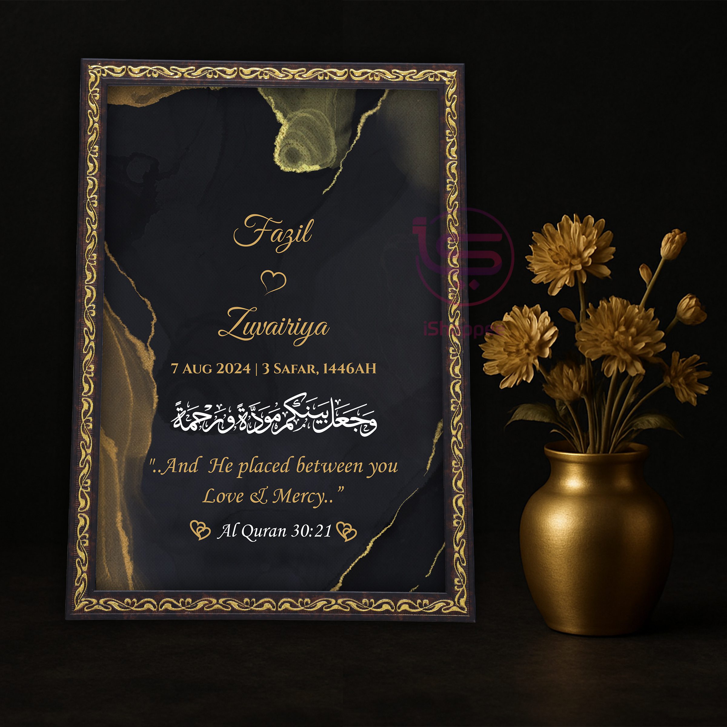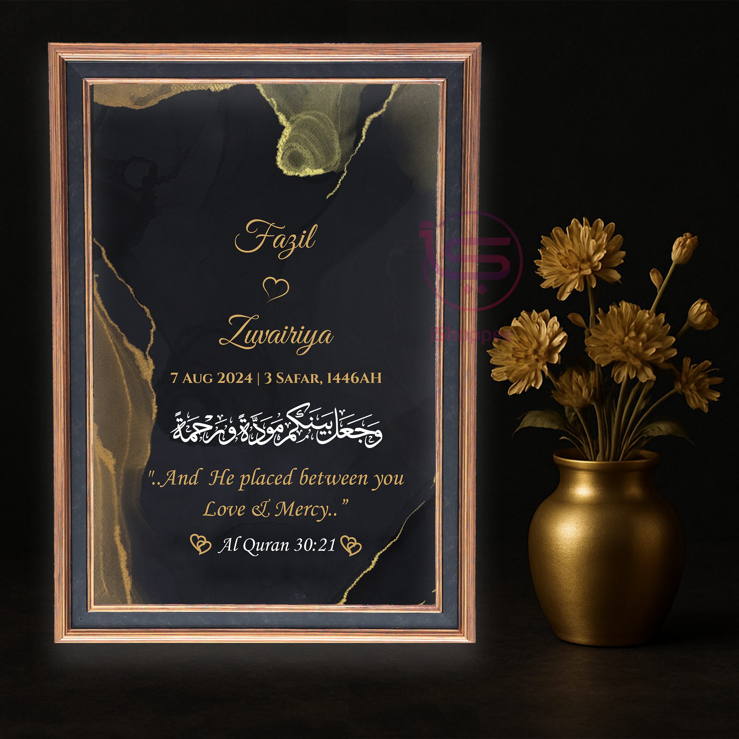 Celebrate your special moments with our beautifully crafted Islamic wedding frame designs, printed on premium-quality material and covered with a glass-like acrylic front that adds a luxurious shine and protection.