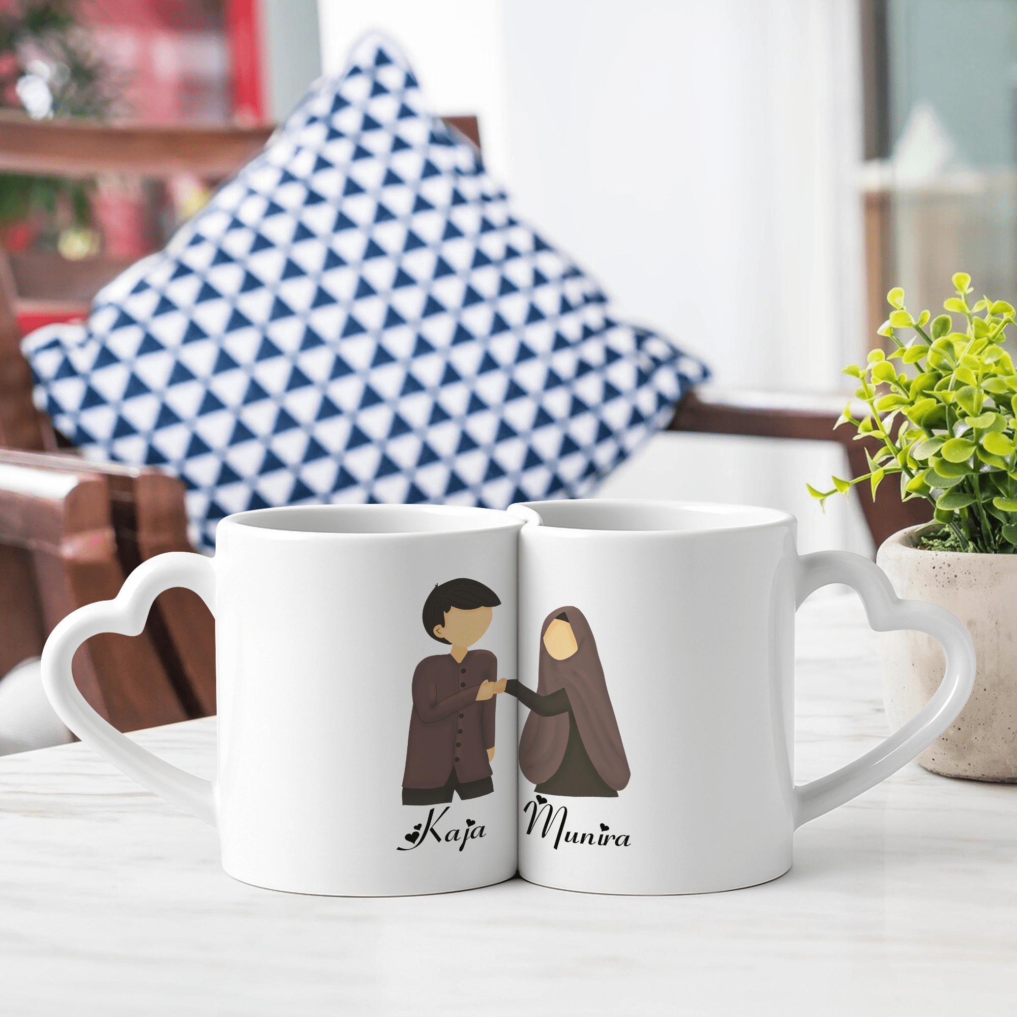 Turn your everyday coffee into a celebration of love with this adorable pair of couple mugs. Designed with matching illustrations and heart-shaped handles, these mugs connect perfectly — just like you and your partner.