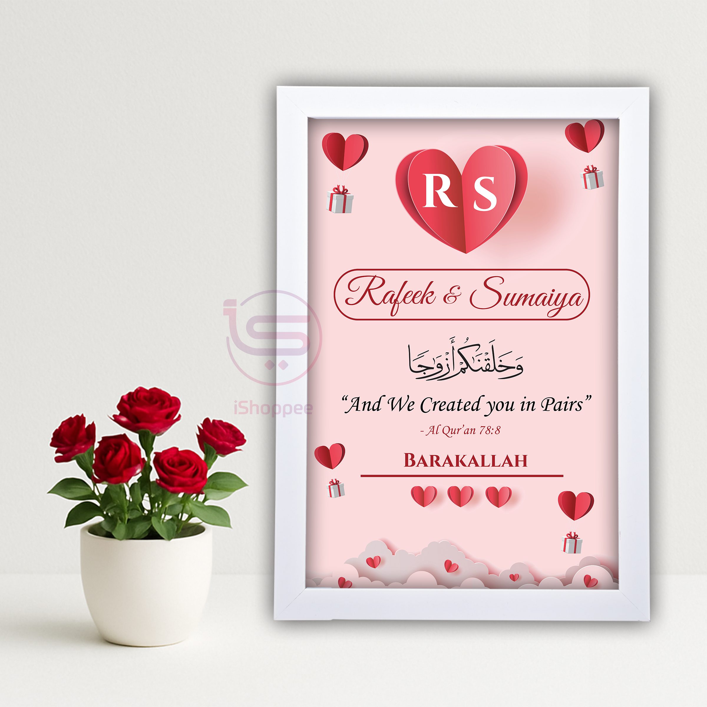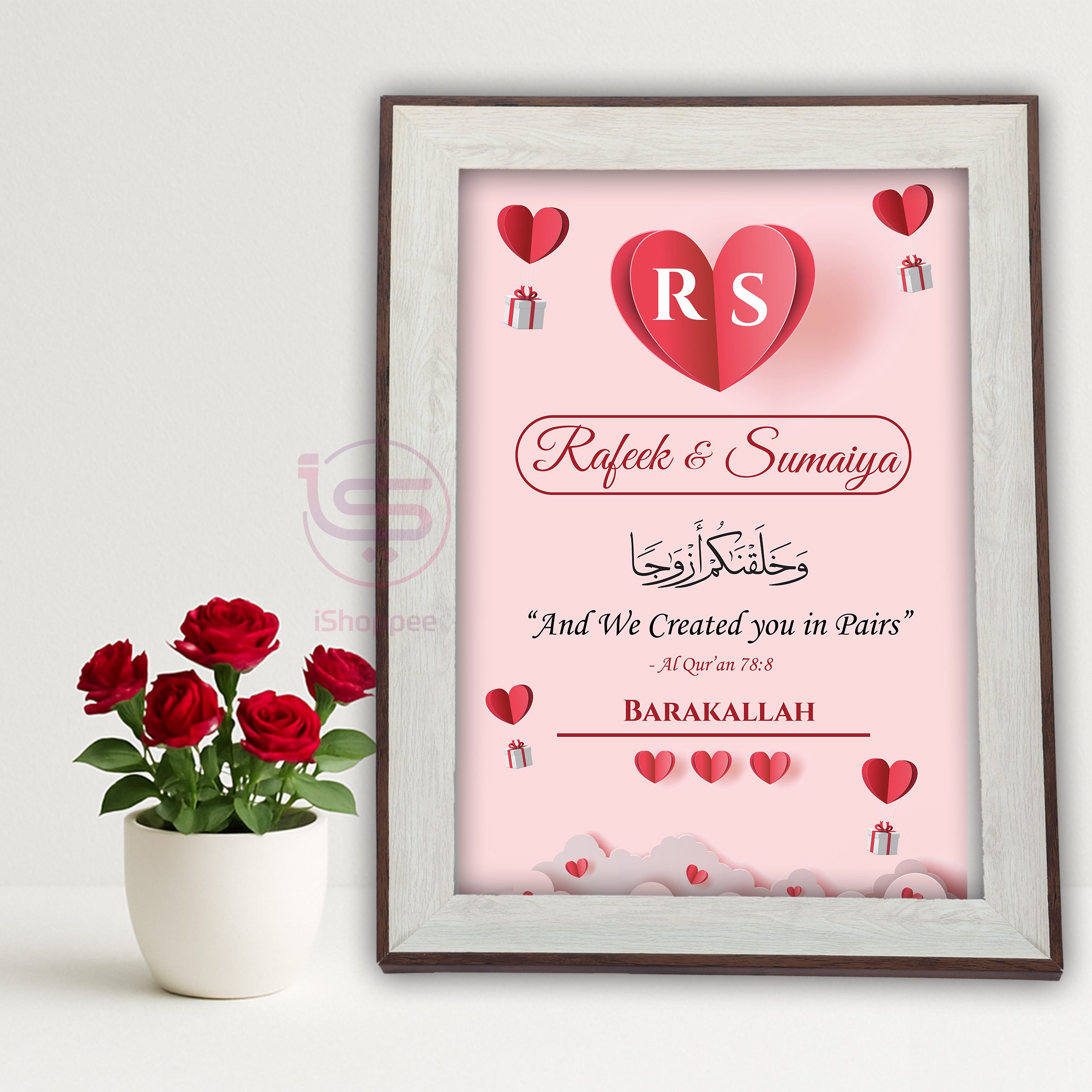 Celebrate your special moments with our beautifully crafted Islamic wedding frame designs, printed on premium-quality material and covered with a glass-like acrylic front that adds a luxurious shine and protection.