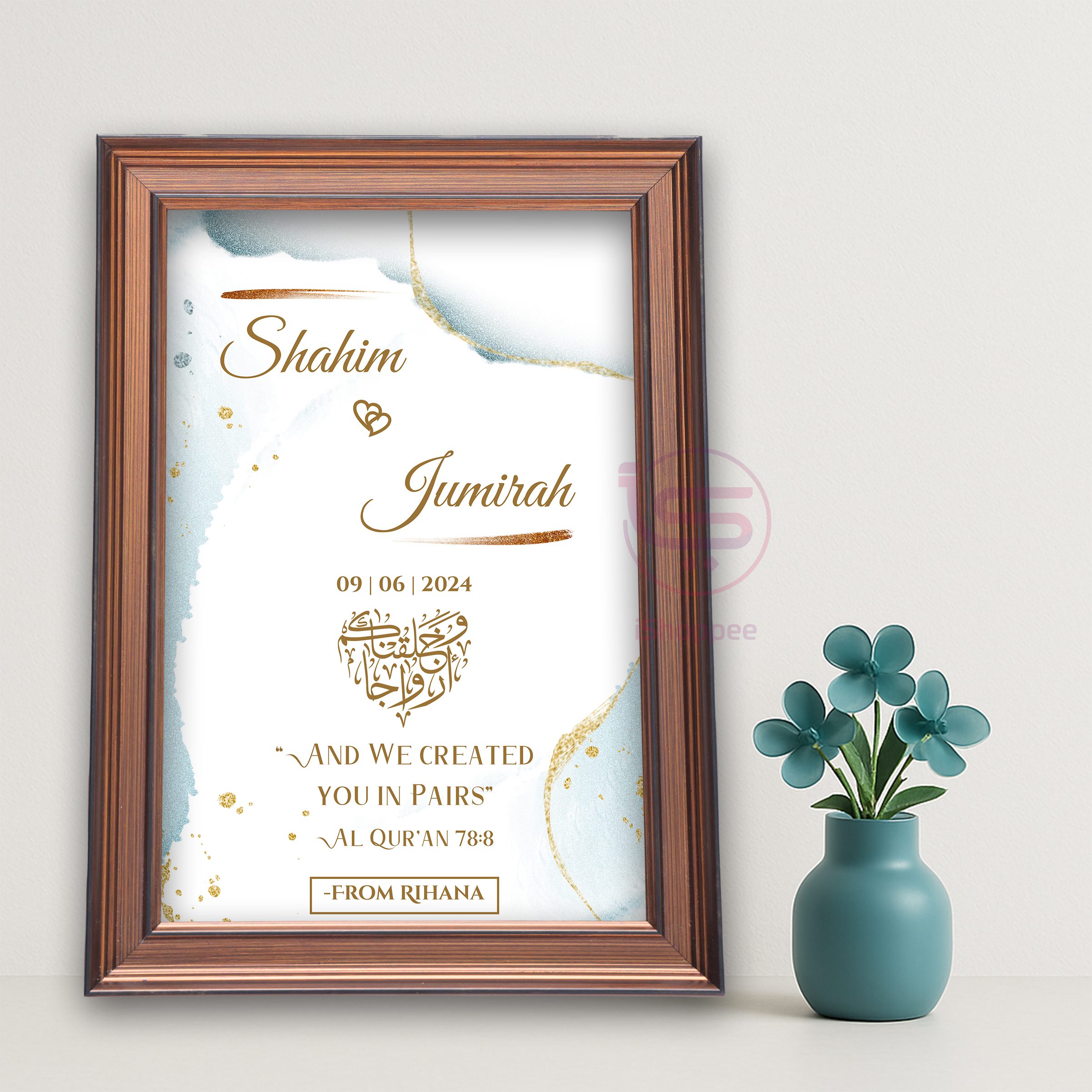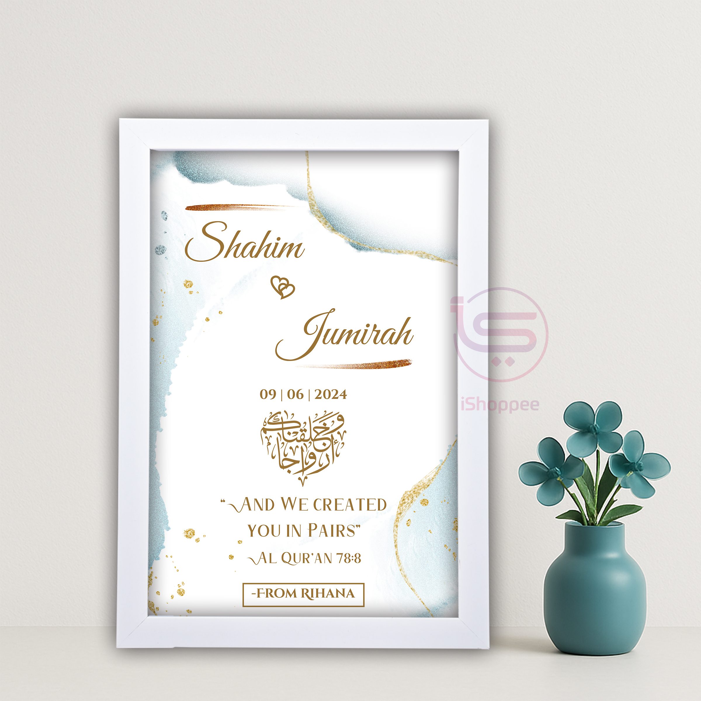 Celebrate your special moments with our beautifully crafted Islamic wedding frame designs, printed on premium-quality material and covered with a glass-like acrylic front that adds a luxurious shine and protection.